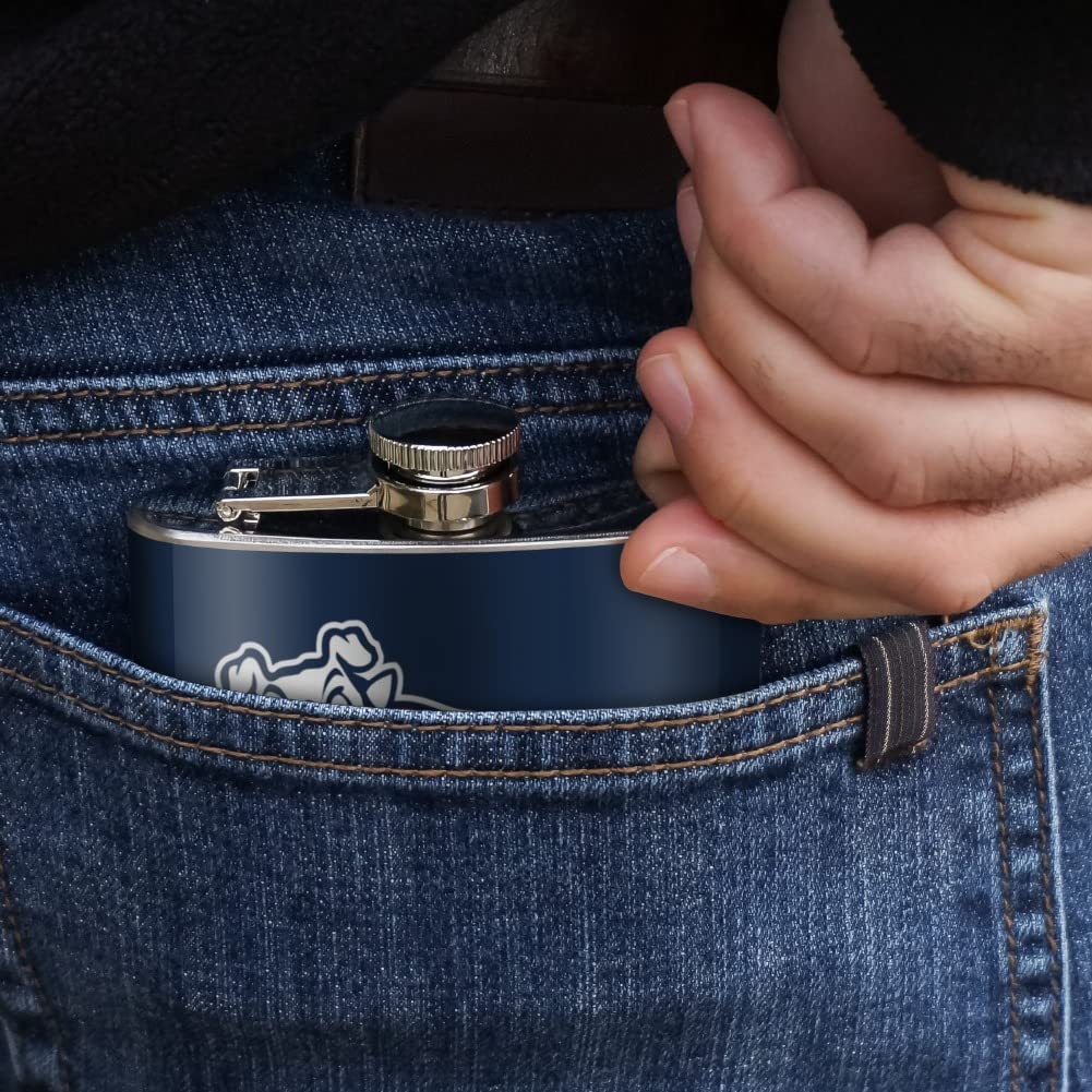 - DURABLE CONSTRUCTION: Made of stainless steel and wrapped in a laminated graphic, our pocket-ready flask holds up to 5 ounce of your favorite beverage. The screw-on cap ensures leak-free performance.